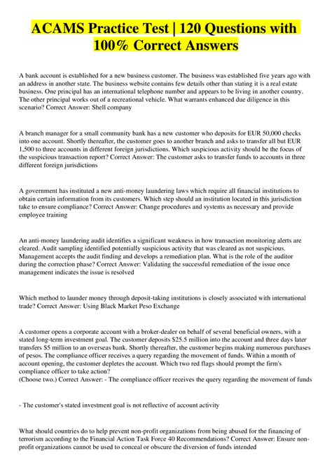 Download ACAMS PRACTICE QUESTIONS Library Binding